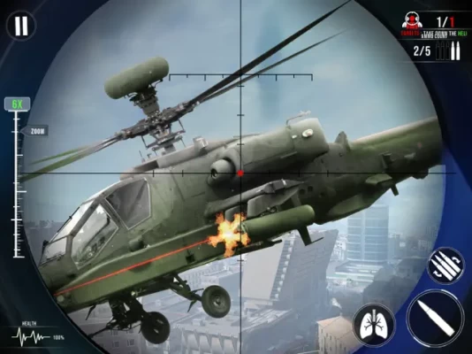 - A helicopter is flying in the air to assist our enemy in some criminal act. Shoot on the right spot to down the helicopter with all the bad guys sitting in it.