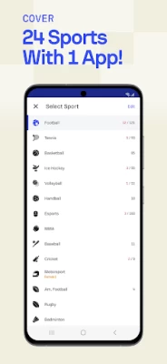 The app allows you to track all leagues and competitions in a wide range of sports: