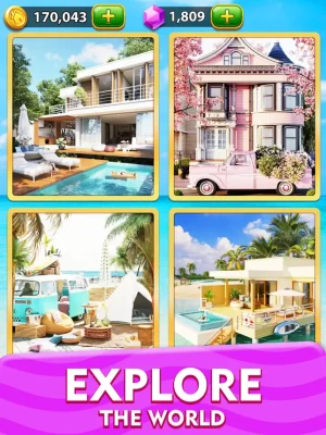 - Different scenes are available for you to decorate, villas, kitchens, swimming pools...and will be updated regularly, each scene will make you fall in love with this game.