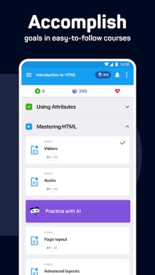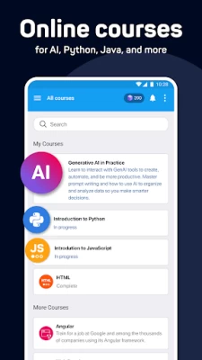 Everyone can learn the latest tech skills. Do you want to practice how to use generative AI, design your own websites or apps, analyze data like a pro, or simply stay ahead in your tech career? Join Sololearn for full access to a complete online collection of FREE tech education! You'll learn by doing fun bite-sized lessons and exercises, develop projects from scratch, connect with millions of other learners, and earn a certificate to show your new skills off -- all from your phone!