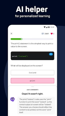 Personalized learning. Get customized challenges, quizzes, and practice from our AI helper, Kodie.