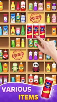 The only thing you need to do is find and gather three identical goods in a variety of items, ranging from fresh crops to essential household items, as you efficiently organize the shelves, clear them, and accomplish tasks within the given time.