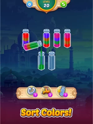- Tap jars to pour and match spices by color. - Sort all colors correctly to win. - Use Power Ups like Reverse Turn, Tap, or Additional Jars when stuck.