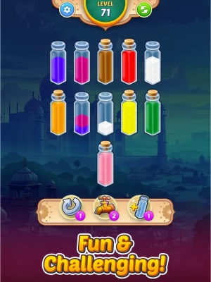 Welcome to Sort Spices - a unique color puzzle game that challenges your puzzle-solving skills and sharpens your mind. It's a simple, fun, and engaging game where you sort colorful spices through vibrant and spicy levels. In this game, you'll be sorting jars of mixed spices by color, making it an ideal option for players looking to hone their sorting skills.