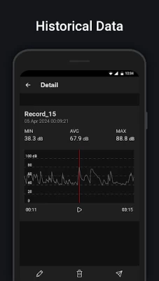 - Display minimum(Min), maximum(Max) and average(Avg) Decibel(dB) in the recording session