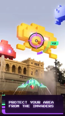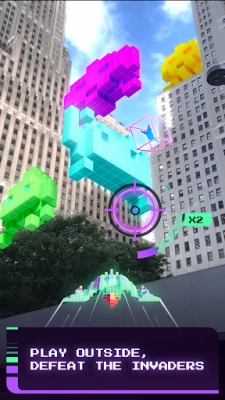 Go outside and join the World Defense team to find and defeat SPACE INVADERS in your neighborhood with your camera in augmented reality.