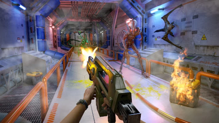 Space shooter alien invasion is an offline FPS scifi Alien shooter Games. Play as a space force to go search and resume mission. Fight invading aliens, search for the space crew and rescue them. Fight hordes of alien invaders and escape from the ship. Cyber hunter alien shooter is a autofire gun shooting games featuring alien attack in space. The spaceship has been destroyed and it is not known if anyone survived in alien invasion space shooter games. The research team is lost and alien invaders are roaming in the spaceship in alien games fps.
