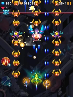 2. Aircraft: Unlock and choose 1 of 8 different aircraft, each with its own set of upgradeable capabilities and evolutionary paths. Enhance your spacecraft's firepower to effectively combat the alien menace.