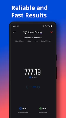SpeedSmart Mini is a free lightweight internet speed test to help you see exactly how your internet connection is performing. With just a single tap SpeedSmart Mini will measure your download and upload internet speed in under 15 seconds.
