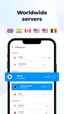 * 100+ global VPN servers network (USA, UK, Japan, Singapore, Germany, Australia, France, Netherlands, Canada, India, etc). You can change your IP to all these countries.