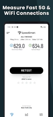 SpeedSmart это бесплатный счетчик скорости интернета он может проверить скорость для Wi-Fi, 2G, 3G, 4G, 5G, Кабель, Волокно и многое другое, это также анализатор Wi-Fi, который поможет вам проверить Wi-Fi соединение, чтобы обеспечить лучшую производительность.