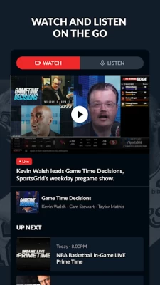 -Access to our 24/7 streaming network, live all day long. Watch or listen to our sports coverage wherever you are!