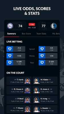 -Super fast live game tracking, with easy to access stats, box scores, live odds, and more
