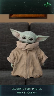 Take and share a Star Wars “selfie” in various iconic costumes and settings, including Jedi, Princess Leia (with hair buns), Han Solo’s carbon freeze, and more