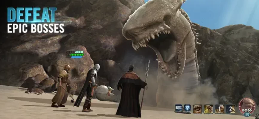 Jedi Knight or Sith Lord – the choice is yours! Defeat opponents & rise to the top as you compete in epic boss battles as a hologamer in a far-off cantina. Collect heroes, legends, & other characters from the Star Wars™ galaxy to construct elite teams ready for the arena. Test your turn-based strategy with strategic moves & pick teammates with complimentary abilities to enter combat with unbeatable squads!
