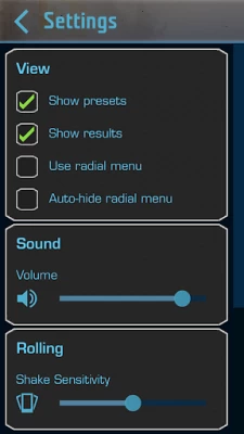 Includes: •Physics-based dice roller for each of FFG's Star Wars game lines. •Over 20 custom background images •Choose between 1.0 and 2.0 interface styles •Adjustable shake sensitivity
