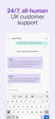 • With 24/7 in-app support from real humans in the UK, we’re always here to help.