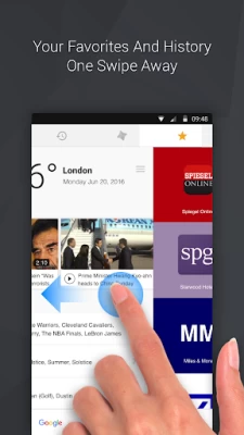 No more finger acrobatics when using the phone with one hand. Search, navigate and share with an easy to reach Omnibox. Results and suggestions instantly appear as you type, including your recent searches and visited websites. Get anywhere in a snap.