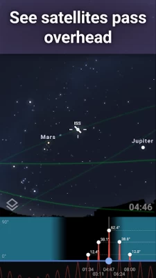 Identify stars, constellations, planets, comets, satellites (such as the ISS), and other deep sky objects in real time in the sky above you in just a few seconds, just by pointing the phone at the sky!