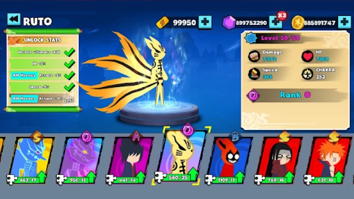 You will find it very enjoyable to experience this simple yet attractive gameplay. All you need to do is dodge, jump, move your chakra, perform basic skills and 3 advanced skills, turn your hero into ultra instinct then fight against invaders.
