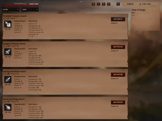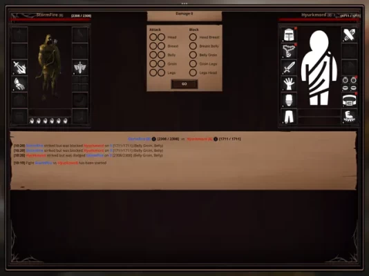 Combat - occurs in text styles where the hero and opponent choose the points for attack and block. In case of victory, the hero gets experience, but sometimes money and thing can be dropped. Experience and dropped items are the main way to develop the hero.