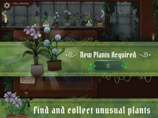 Explore the lands beyond your store to find new plants, but be careful! The dark woods and lakes are not always friendly to a simple herbalist. You might discover powers beyond your wildest dreams - or lose your mind completely. Use context clues to determine which places to visit, and which to avoid!