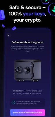 Unlike exchanges, the StrikeX Wallet is non-custodial — meaning that we never have access to your funds or personal information. You maintain complete control over your assets with your unique private key recovery phrase.