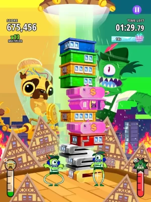 Push for high scores by feeding as many combo condos to the monsters as you can, and activate their special abilities to shake up the gameplay and earn crazy multipliers. With only two minutes on the clock, combine quick thinking with strategy to plan your moves carefully to get the highest score while aiming to keep the tower from toppling down!