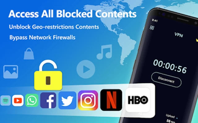 Proxy blocked websites such as: Netflix VPN, YouTube VPN, Instagram, Snapchat, Twitter, Facebook, Viber, Skype, WhatsApp, Wechat etc…