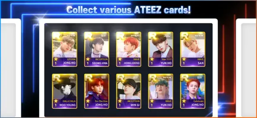 · Collect ATEEZ's cards and upgrade to more beautiful and powerful cards!