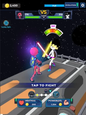 The lightsaber stickman warrior meet a enemy that is too strong and can not defeat? Increase the power and health of your stickman warrior to better withstand and deal greater damage to enemy. Also, upgrade lightsaber weapon and shield to make your Supreme Saberman stronger
