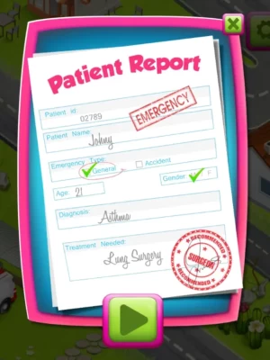 You are the crazy surgeon doctor, and it's your responsibility to treat patients with different diseases and perform surgeries in this game. Patients keep arriving in the ER, and you're the one who can use real surgical tools to save lives. You'll perform surgeries like open-heart surgery and put smiles back on patients' faces, but first, gather their medical history before sending them to the emergency operation room.