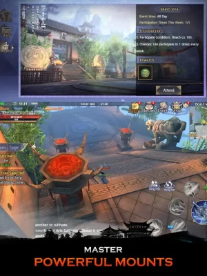 In Sword of Shadows, players can literally take flight, allowing them to experience a martial arts battle like never before. The Eight Fighting Flying Skill allows players to soar above their PvP opponents. Players can also learn the Ultra Flying Skills to fly across Sword of Shadows' expansive map.