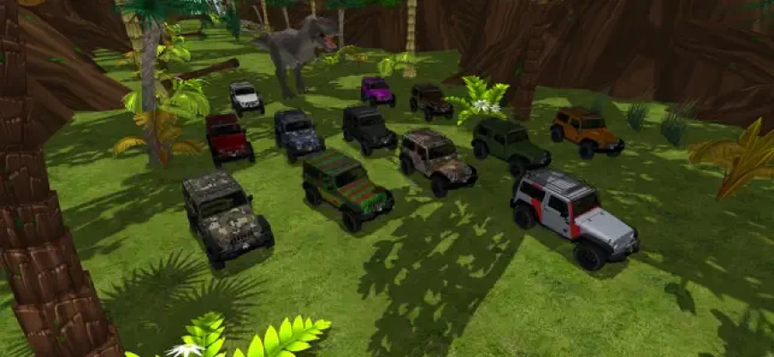 There's no time to lose! Choose your car and show the dinosaurs who is the king of the jungle! Don’t become Tyrannosaurus Rex food!
