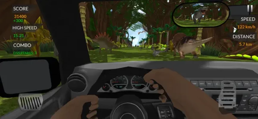 - When driving over 100 kmh, overtake dinosaurs closely to get bonus points and cash