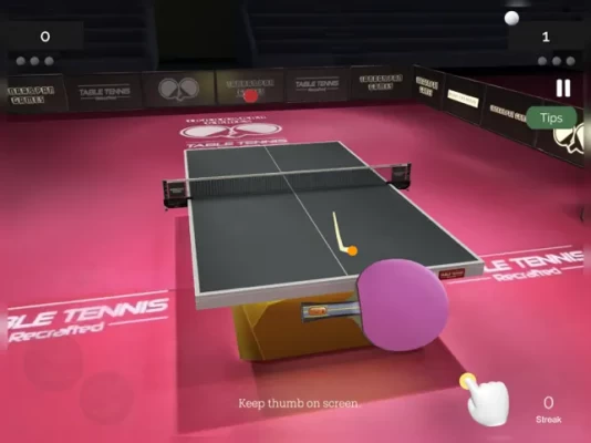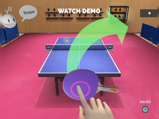 Pass 7 practice levels (30 seconds each) and test your skills in forehand top-spins, backhand top-spins and blocks!