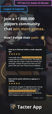 Tacter is your #1 TFT app. Join thousands of users that use Tacter to win more games on Teamfight Tactics and climb the ranking ladder.