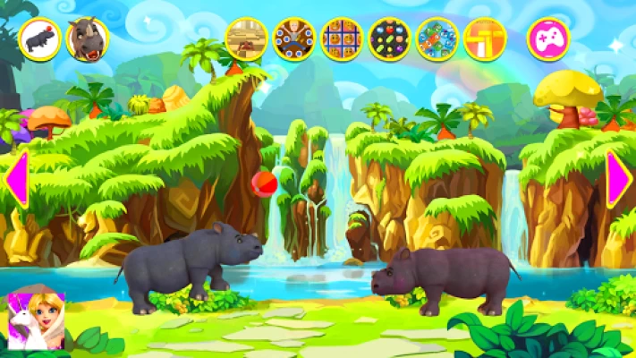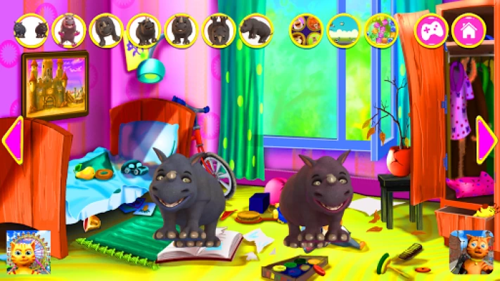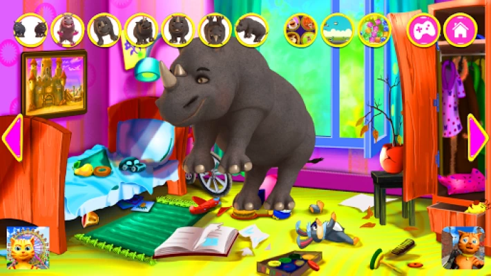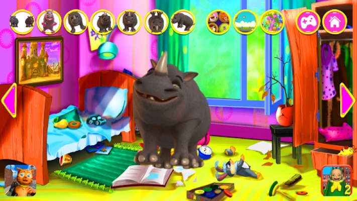 Meet the talking Rhino. Rhino is a very gentle rhinoceros that loves to make new friends and to play with them. He responds to your touch and repeats everything you say with his funny voice. He loves to make grimaces and to dance. There are also a lot of exciting games spread around the jungle and he cannot wait to play them with you!