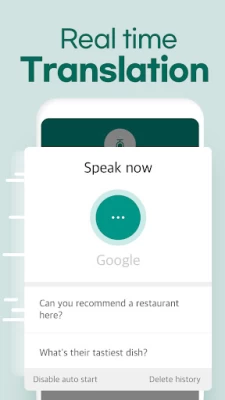 Voice recognition first appears when running the app and helps you when you need an on-the-spot translation, even with an unstable internet connection. You can check your previous sentences through the voice recognition history.