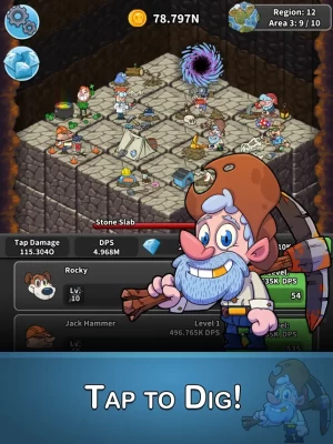 Tap Tap Dig is the perfect incremental clicker / idle game for fans of endless fun. Tap the day away digging for gold, diamonds, fossils, and more! Bring along friends like Rocky the loyal dog, Mack “The Anchor” pirate, and Jack Hammer the construction worker and get digging today!