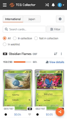 Easily navigate through the most complete database of both international and Japanese cards with almost every card variant ever released included, such as Reverse Holo and 1st Edition.