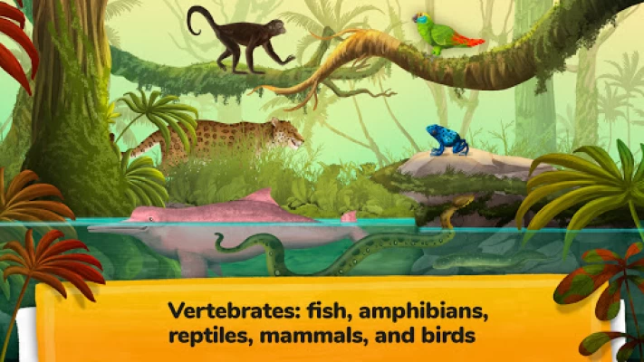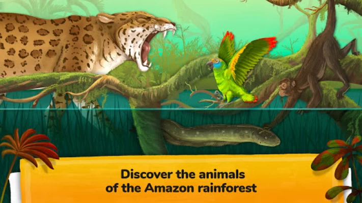 ? Play and discover the macaws, electric eels, poison dart frog, spider monkey, anaconda, pink river dolphin, and jaguar with this educational and fun application ideal for the most curious users.