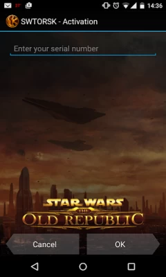 Keep your STAR WARS™: The Old Republic™ account protected with the official Star Wars: The Old Republic Mobile Security Key app for your Android device!