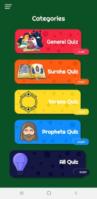 4 Categories: Quiz GENERAL - Quiz SURAHs - Quiz VERSES - Quiz PROPHETS