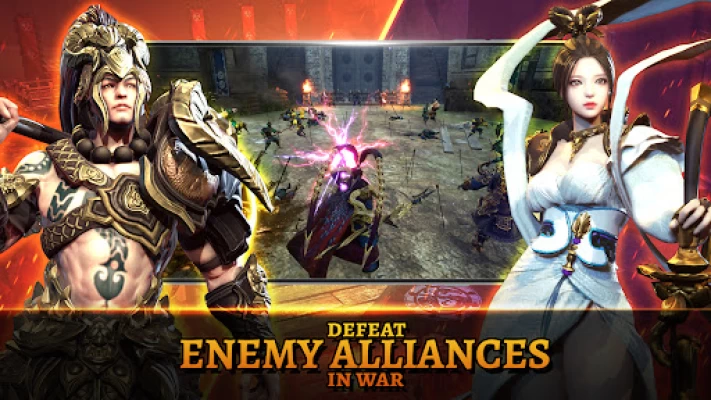 Participate in large-scale 50 vs. 50 Battles between Alliances with heroes and fight in this large-scale Alliance War with 49 other monarchs! Strategically place your warriors and form impregnable lines of defense. Lead your alliance to victory!