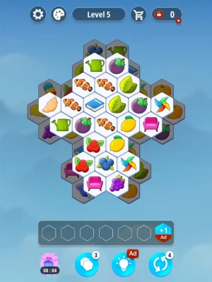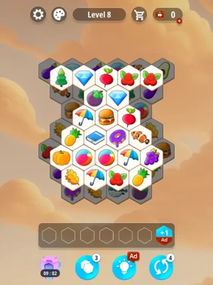 Welcome to Tile Wonder, the ultimate tile match-2 puzzle game that will keep you captivated for hours! Your goal is to eliminate all the tiles in each level, but with a twist – you must make groups of two hexa tiles to clear them.
