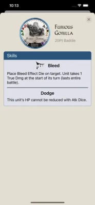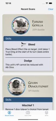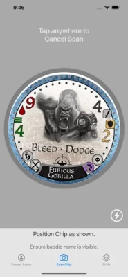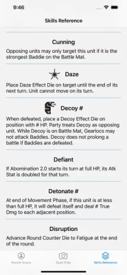 The app uses your phone's camera to quickly scan Baddie Chips, then displays detailed descriptions for all the Baddie's skills. No more needing to look up skills on reference sheets.