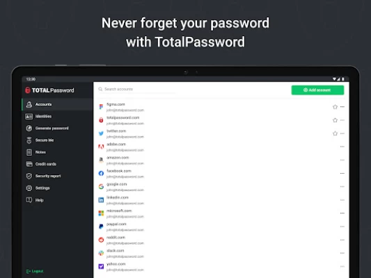Total Password is a smart password manager, ideal for busy people who don’t have time for remembering all logins and passwords. We manage and protect all of your data and online privacy with deeply integrated encryption. Quickly fill passwords by using the Android Auto-fill service on android version 8.0+ with backward support for older versions up to 5.0.