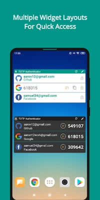 With TOTP Authenticator, you can easily add multiple widgets for your favourite accounts on the home screen for quick access. These widgets come in multiple layouts, so you can choose whichever suits you the best.