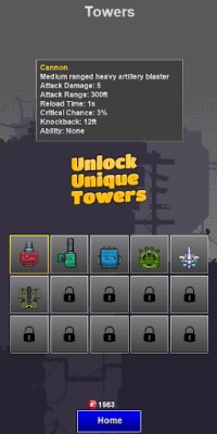 Tower Grid - Roguelike Warfare is a roguelike tower defense game with a unique twist of Idle and incremental features. Tower Grid - Roguelite Warfare is inspired by other Genetix games like Lone Tower and Knights Run it is an incremental tower defense game where you control and upgrade a grid of 6 unique towers and have to survive as many waves as possible. There is scrap material farming, tower collecting, Gem mining, and plenty of repairs to do in order to survive each wave of tanks! Defend your towers until they're destroyed, earn coins & gems to unlock permanent upgrades, then give it another try! Build the perfect tower grid for defense against your foes!